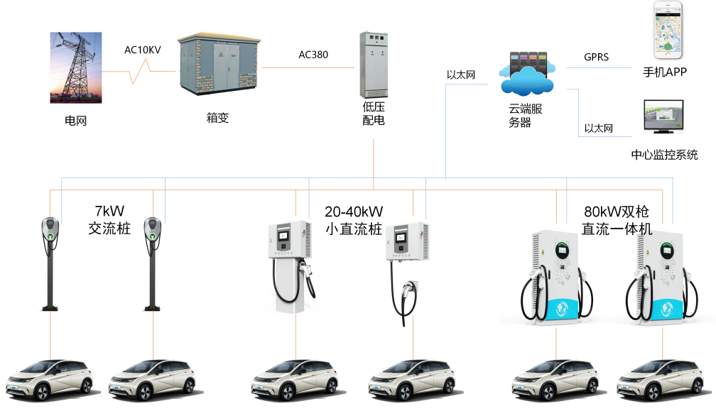 農村地區新能源車主要以微型、小型車為主,搭配電池容量較小,充電功率主要在40kW以下,針對以上特點,盛弘股份配套推出7kW交流樁、20-40kW單槍小功率直流充電機、80kW雙槍直流充電機產品解決方案,滿足鄉村新能源車的充電需求,可實現智能有序充電,解決變壓器容量不足等問題。