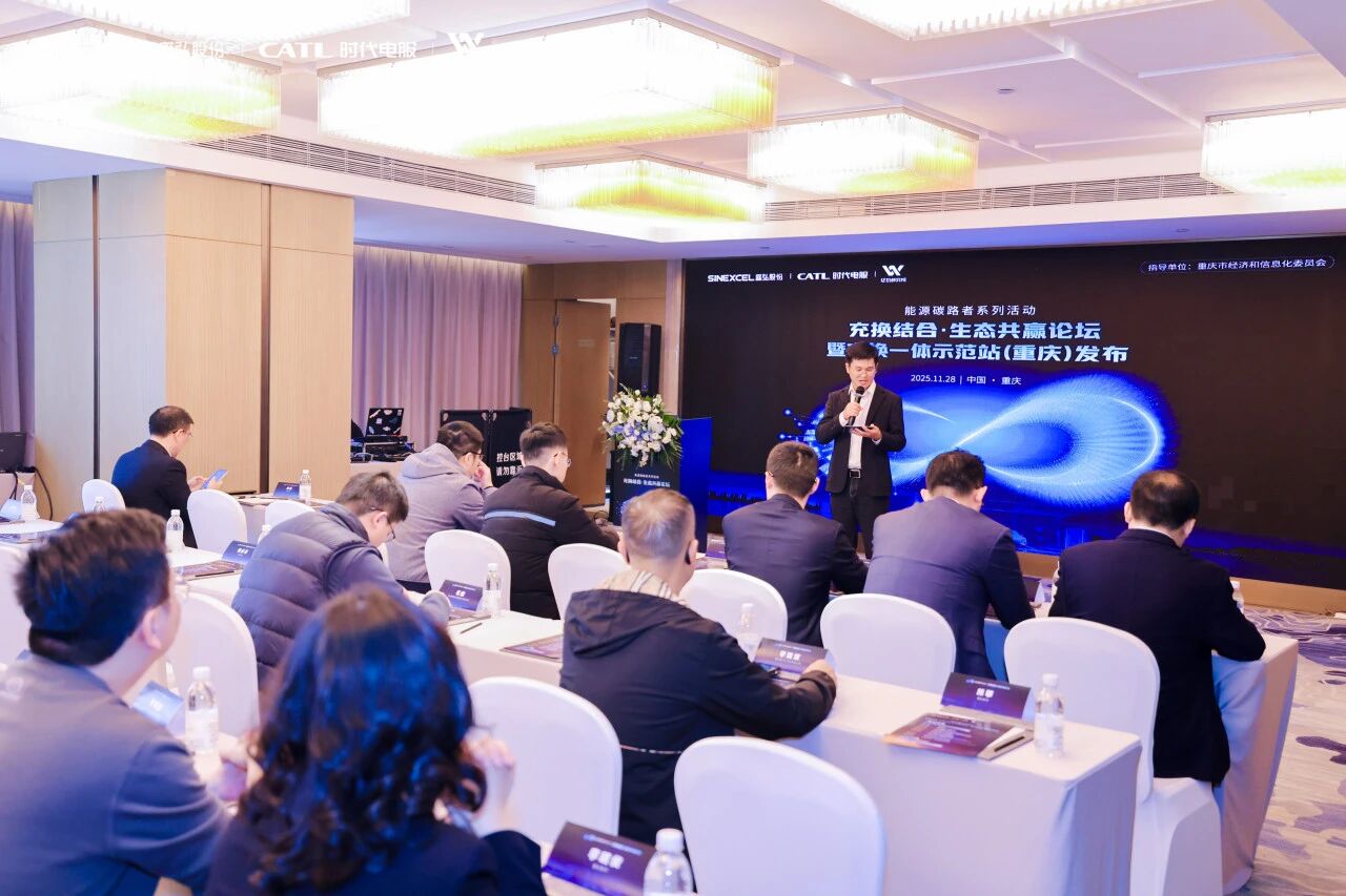 中國充電聯(lián)盟執(zhí)行秘書長鄒鵬、長安車聯(lián)出行業(yè)務(wù)副總經(jīng)理蔡多多、時代電服網(wǎng)絡(luò)發(fā)展總經(jīng)理曲國俊、時代電服川渝湘鄂大區(qū)總經(jīng)理張永燦、東東新能源副總經(jīng)理周楊、盛弘股份全球營銷總經(jīng)理李曉俊等產(chǎn)業(yè)鏈各方代表齊聚山城,圍繞充換結(jié)合路徑展開深度對話,共繪產(chǎn)業(yè)協(xié)同發(fā)展新藍(lán)圖。