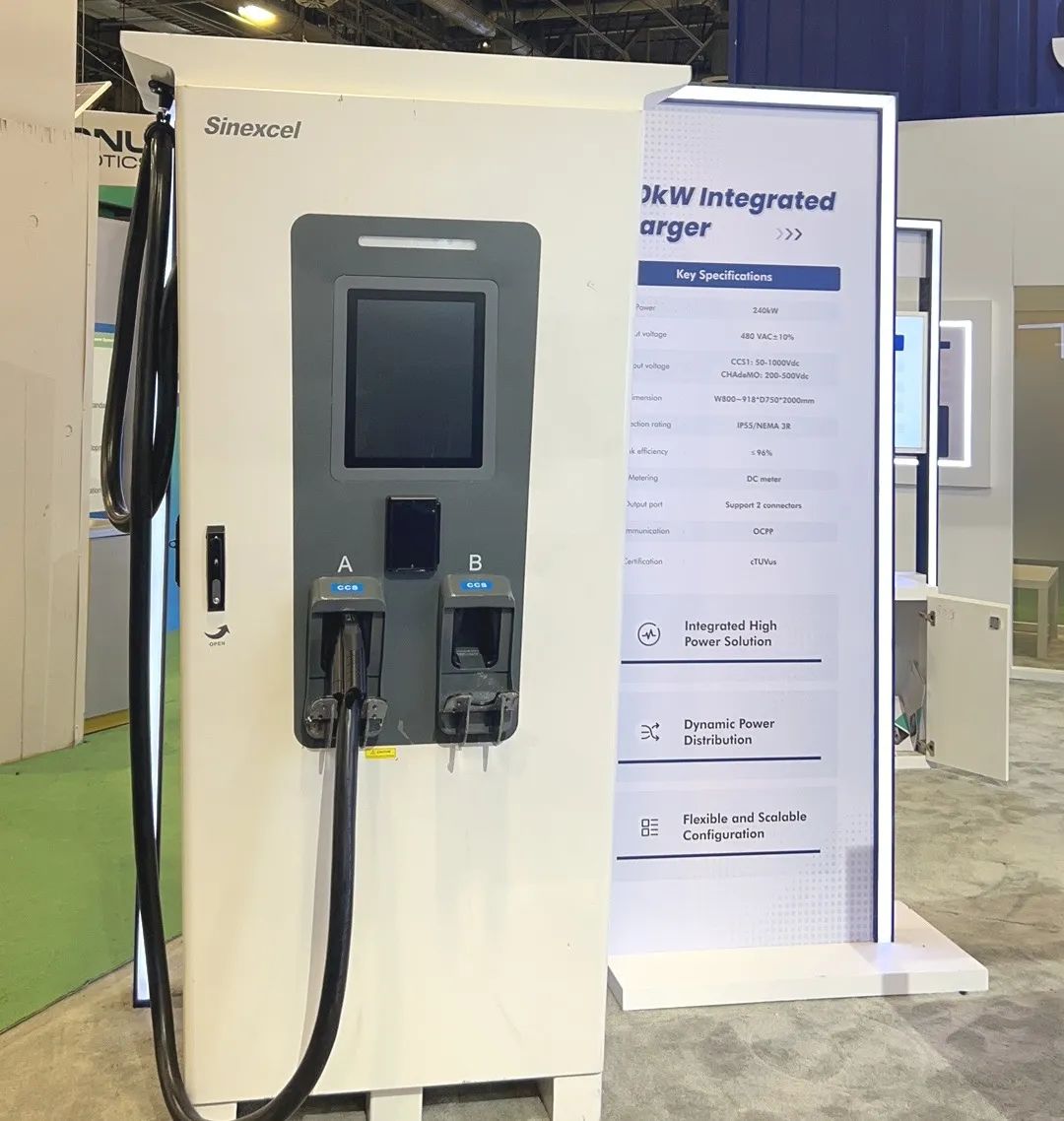 同期,盛弘股份歐標充電堆產品憑借功率動態分配,高功率輸出,系統靈活延展三大優勢性能而備受矚目。該產品支持全矩陣功率切換,主機靈活分配功率,6把充電槍同時按需高效輸出;支持500A大電流充電,可實現終端雙槍液冷,滿足快速充電需求;進一步升級槍線管理裝置,減輕抬舉槍線重量,同時確保槍線不落地,減少摩擦延長使用壽命。