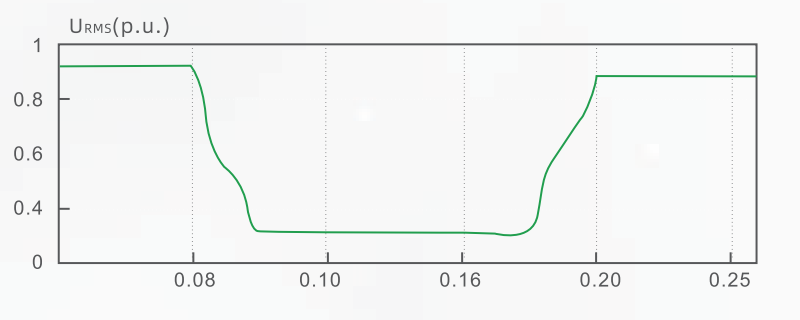 IEEE標準及國家標準《電能質量電壓暫降與短時中斷》(GB/T30137-2013)規定了電壓暫降定義:電壓暫降是指電力系統中某點工頻電壓有效值暫時降低至額定電壓的10%~90%(即幅值為0.1~0.9(p.u.)),并持續10ms~1min,此期間內系統頻率仍為標稱值,然后又恢復到正常水平的現象。電壓暫降以剩余電壓百分比為度量。短時中斷是指一相或多相電壓頻時降低到0.1p.u.以下,且持續時間為10ms -1min。